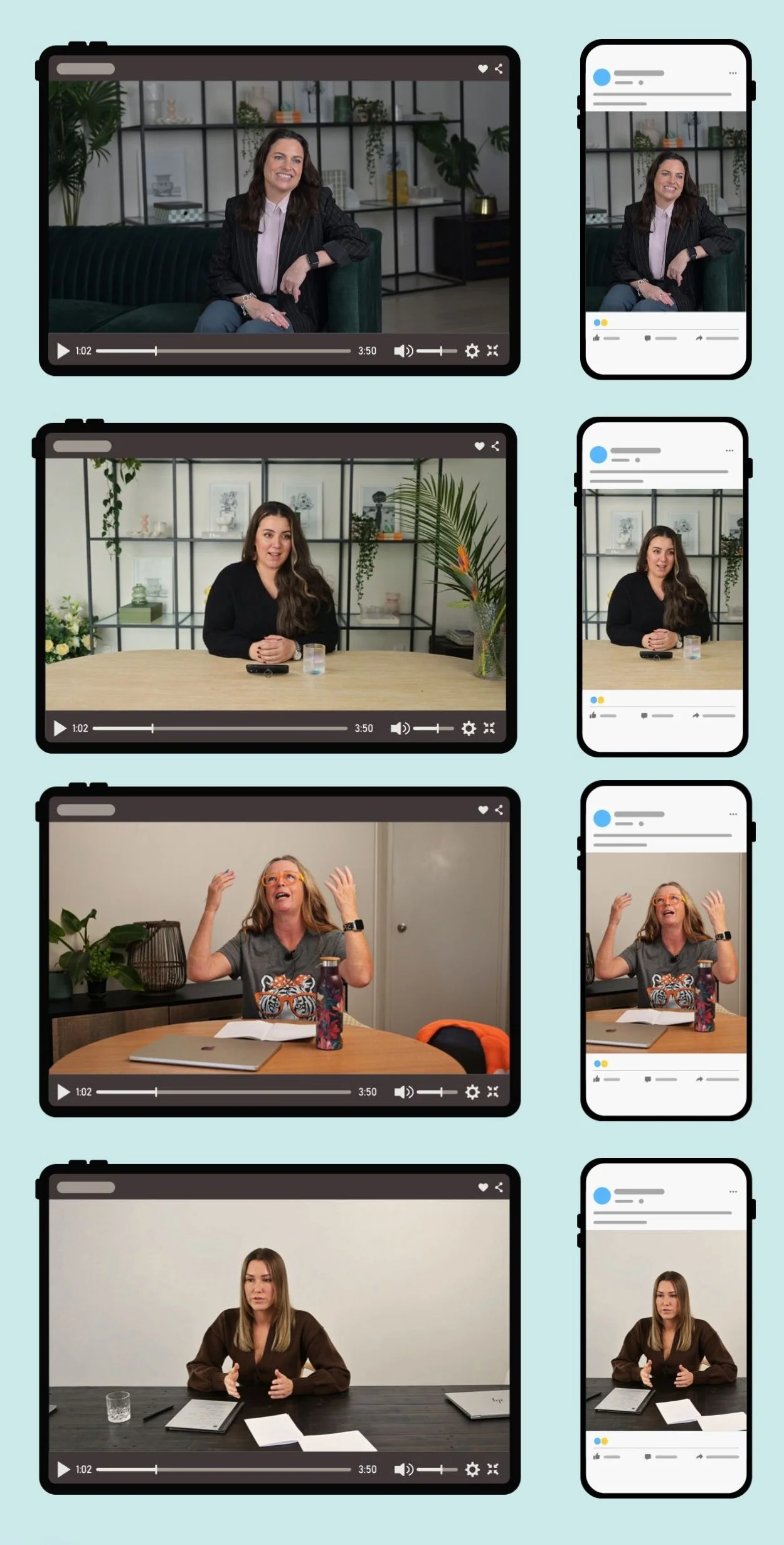 Set up is simple and effective for no nonense communication of your talking points - just clean audio, flattering light, and authentic storytelling. Straightforward, and ready to hand off for your team to edit further.