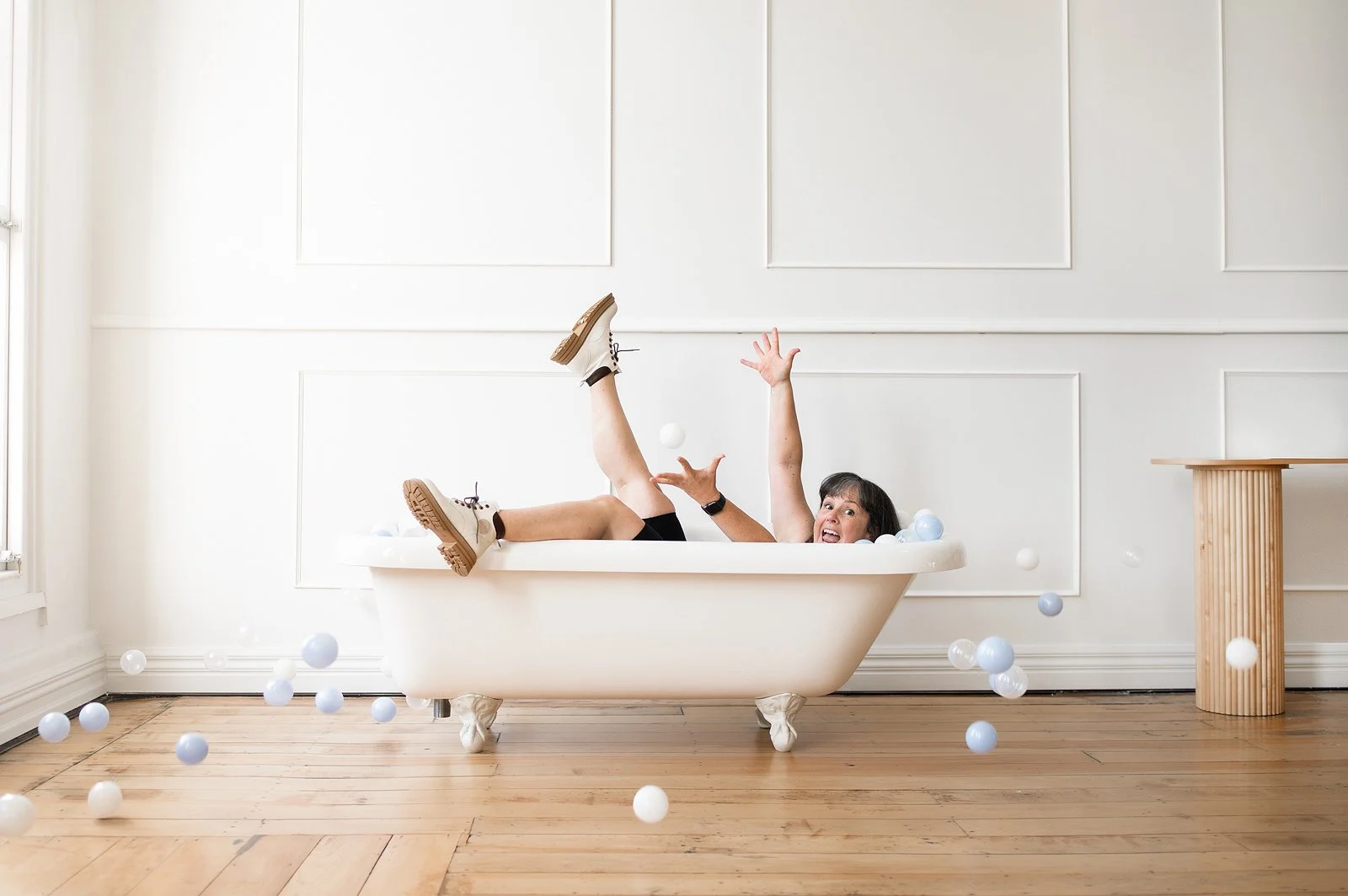 Me having a whole load of fun on the shoot…. If you’re having fun, your images will translate so much more. You don’t have to be in a bath with balls either! Even our more corporate shoots are fun… There’s always time for a laugh & some banter!